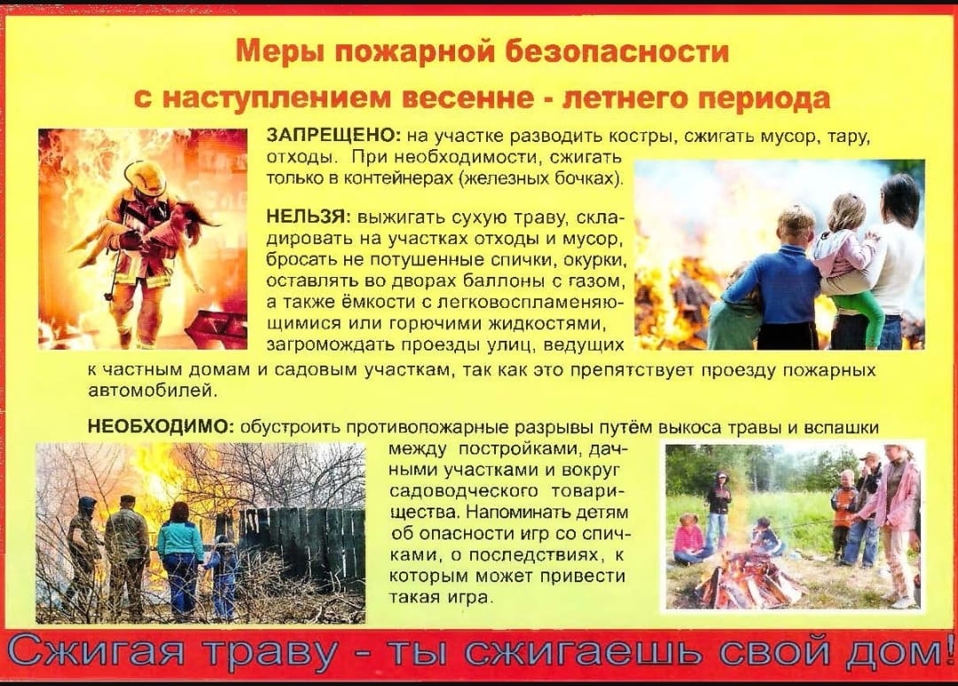 СОБЛЮДАЙТЕ ПРАВИЛА ПОЖАРНОЙ БЕЗОПАСНОСТИ В ВЕСЕННЕ-ЛЕТНИЙ ПОЖАРООПАСНЫЙ ПЕРИОД!